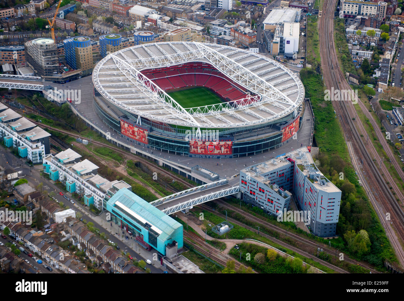 An aerial view of the emirates stadium, home of arsenal football club on april 20, 2007 in ashburton grove, holloway, north london, england.